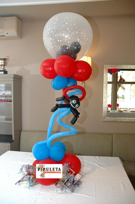 Condiciones particulares que debes conocer al contar con nosotros: en Fiestas Piruleta realizamos toda clase de Decoracion con globos. No dudes en pedirnos presupuesto de lo que te guste y ten en cuenta los siguientes datos: - Siempre que el coste alcanza los 100€ se realiza el montaje un sitio en Madrid capital sin plus alguno. - Los colores siempre son a tu elección dentro de toda la gama del mercado. Si hay que pedir globos fuera de España necesitaremos al menos un mes de antelación. - Los montajes se deben realizar con la presencia del cliente que dará su conformidad mediante el abono de las cantidades acordadas en presupuesto. No podemos garantizar los montajes manipulados por el cliente tras la marcha de los decoradores, los montajes en exterior si cambia el clima ni que algún globo explote... son globos de primera calidad pero globos! Nosotros lo dejamos siempre perfecto, tú nos das el ok y, en interior, suelen aguantar una semana (muchas veces es hasta un mes). Si hay algún problema pide a nuestro equipo que te facilite un documento de reclamación interna y envíanoslo inmediatamente firmado junto a las fotos que acrediten el problema, sin este paso, no podremos hacernos responsables. - Las reservas se confirman mediante abono del 60%. - Los globos de latex con helio flotan unas 6h en interior. - Todo se monta sin bases ni elementos de alquiler salvo que se matice lo contrario en presupuesto.